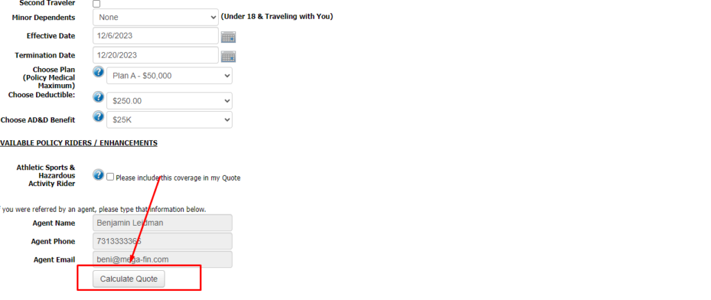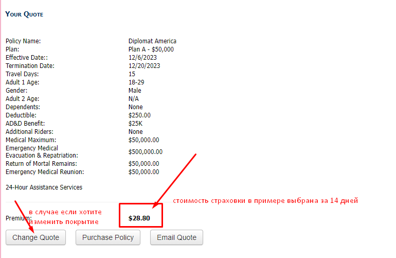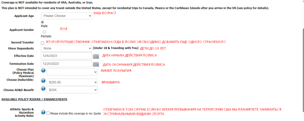 После нажатия на Get A Quote перед вами откроется страница расчета. на которой нужно внести свои данные, инструкция ниже на изображении